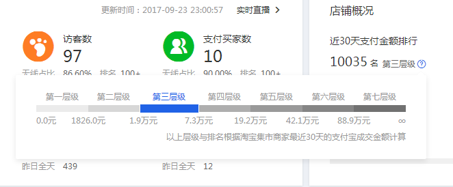 当见不成级层级,在其他的条件不变的情况下,按照理论上来说,我们能够获得的流量就能够越多。特别是当你店铺的层级从第二突破到第三层我或是第五突破到第六层的时候最为明显。